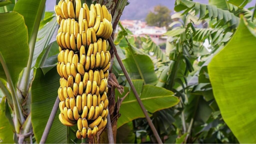 Banana trees are another fast-producing option for warm-weather growers. While not technically trees (they’re herbaceous plants), bananas grow tall and lush, giving the appearance of a small tropical tree. Under optimal conditions, a banana plant can start fruiting within 9 to 12 months.