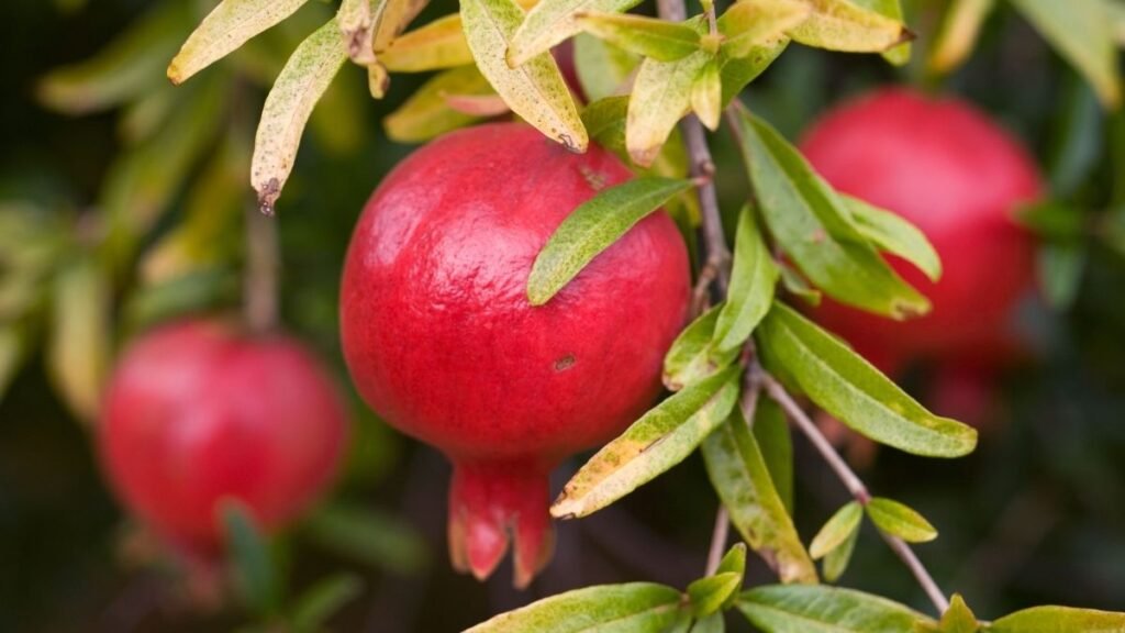 Plant pomegranate trees in soil that drains well and provides plenty of sunlight. These trees are relatively drought-tolerant once established but do require regular watering during the growing season. The fruit is typically ready to harvest in October, once the skin is fully colored and the fruit sounds hollow when tapped.